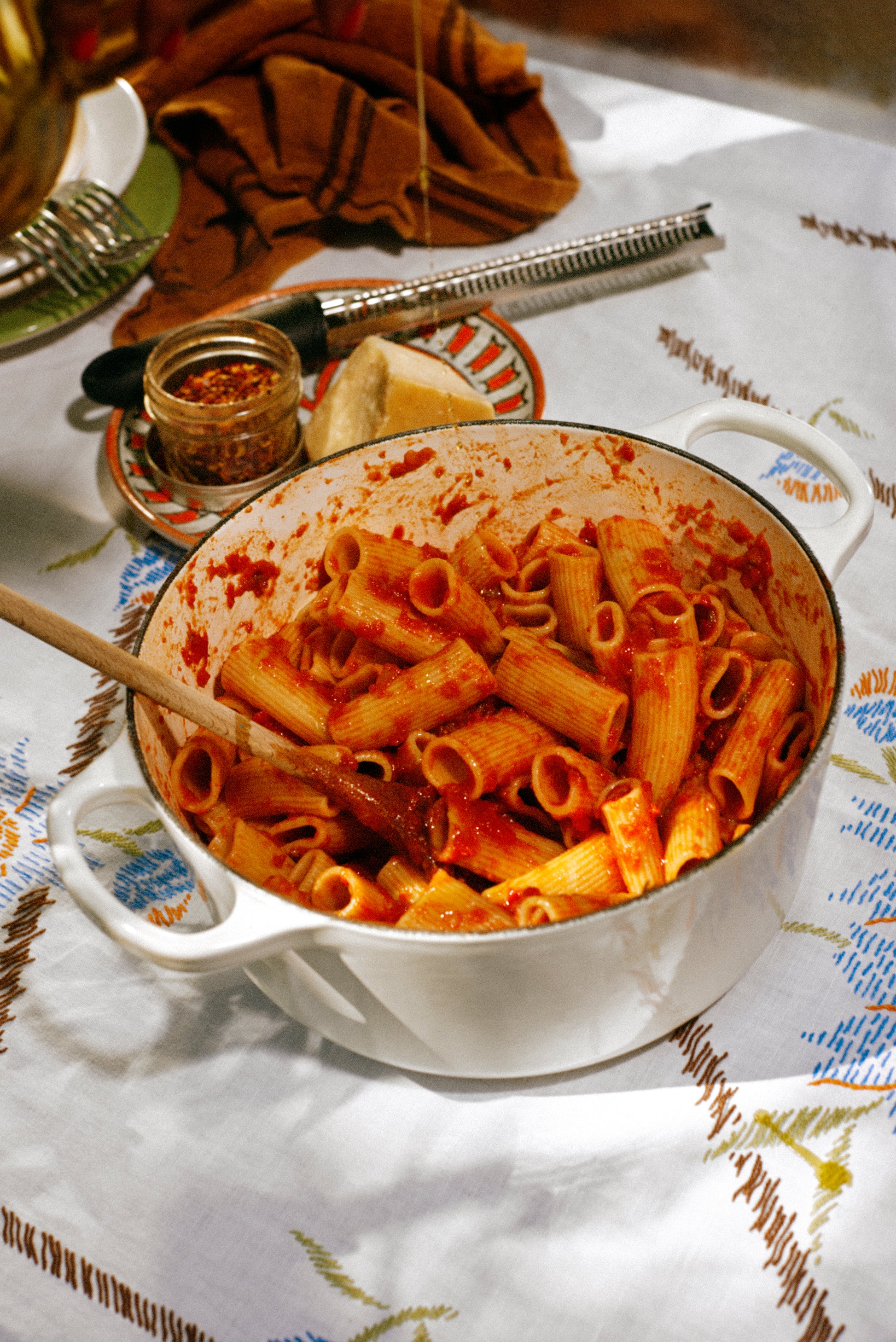 A classic for a reason, this sauce is simple and perfect — everything you need and nothing you don't. Your go-to for dressing a large bowl of al dente pasta, starting a quick weeknight ragù or layering into your famous Baked Ziti.